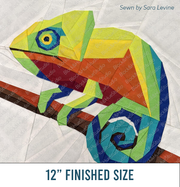 Bring the vibrant beauty of the rainforest to your sewing room with this bundle of three modern foundation paper piecing (FPP) quilt block patterns. Featuring a chameleon, frog, and parrot, this coordinated set is perfect for creating a bold statement quilt, playful wall hanging, or colorful collection of animal blocks.